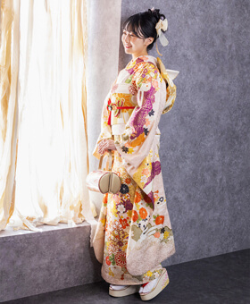 成人式の振袖レンタル・購入を扱う京都さがの館では、小物類のコーディネートも自由に決めて頂けるので、紫系統の小物類を合わせてみても気品溢れるスタイルとなります。