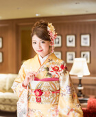 肌なじみの良い黄色地は明るく華やかな雰囲気を演出してくれます。