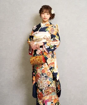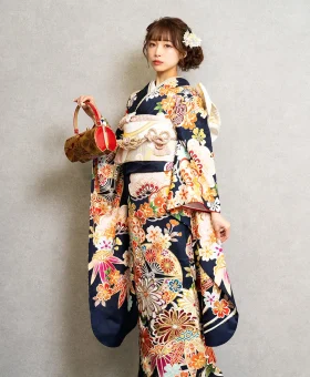 清潔感と知性を感じる紺色のお振袖。