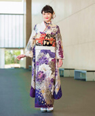 大人びて優雅な印象を与える紫が大きなぼたん文様にもあしらわれており、豪華さも演出。