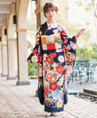 落ち着いた色味で大人っぽい印象のレンタル・販売振袖:紺地梅桜ししゅう[FS0892]。