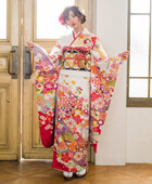 豪華な吉祥文様を間に挟んだ紅白で、成人式らしい華やかでおめでたい印象に。