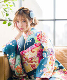 桜が川を流れる様子を振袖一面に再現。 爽やかで上品な一着に仕上がっています。