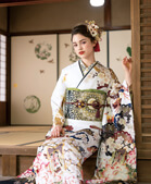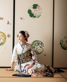 成人式にレンタルできる白地の振袖。