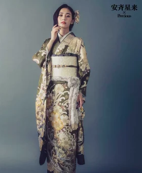 レンタル/モスグリーン地大菊に桜/FR5025 |