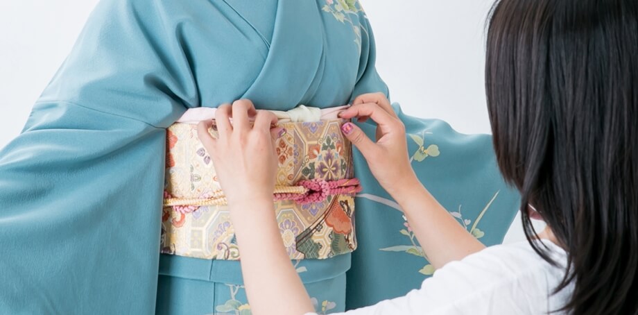 もし訪問着をお持ちならご自宅から着付けて来られてもいいですし、前撮りスタジオでお嬢様と一緒に着付だけ依頼することも可能です。