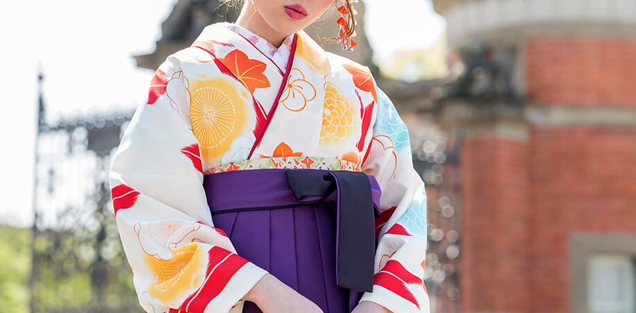 明治33年から続く京都さがの館では、熟練の着付師の技術によって着崩れや息苦しさの心配がなくお気に入りの袴で卒業式を過ごすことが可能。