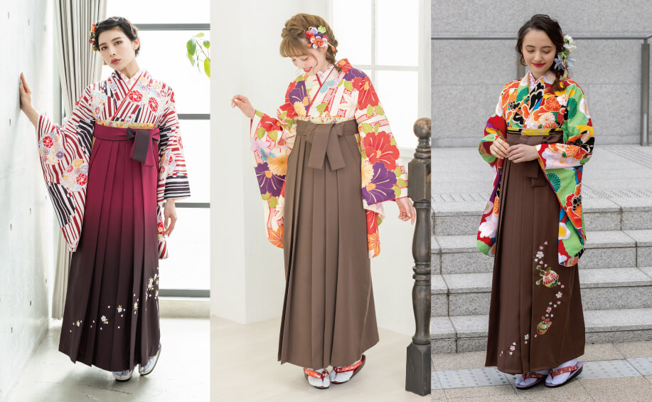 卒業式で人気の茶色の袴は、実は赤との相性がとても良いんです。