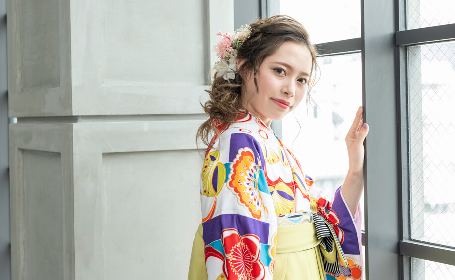 腕の長さをきちんと採寸させていただき、卒業式当日は、事前に肩上げをした状態の、あなたにぴったりの二尺袖をお着付けします。