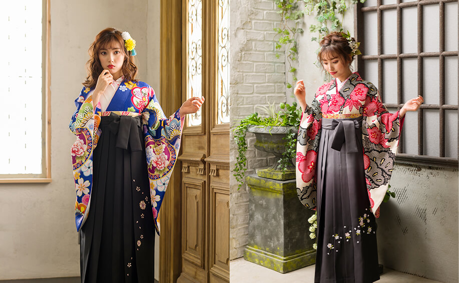 右:レンタル着物CCC545×袴FBS062