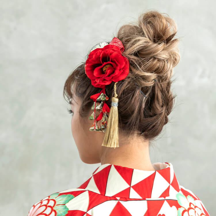 古典柄には王道のアップスタイルで洗礼された大人の女性へ