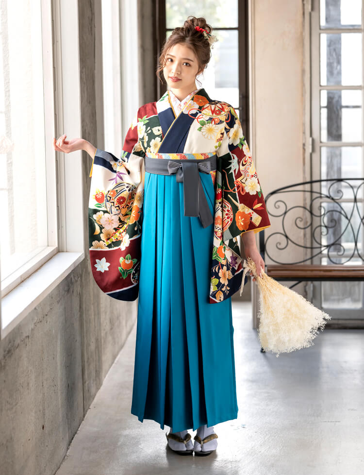 - 軽く肘を曲げて袖を広げると、細かな柄が見え、袴ならではな華やかな写真になる