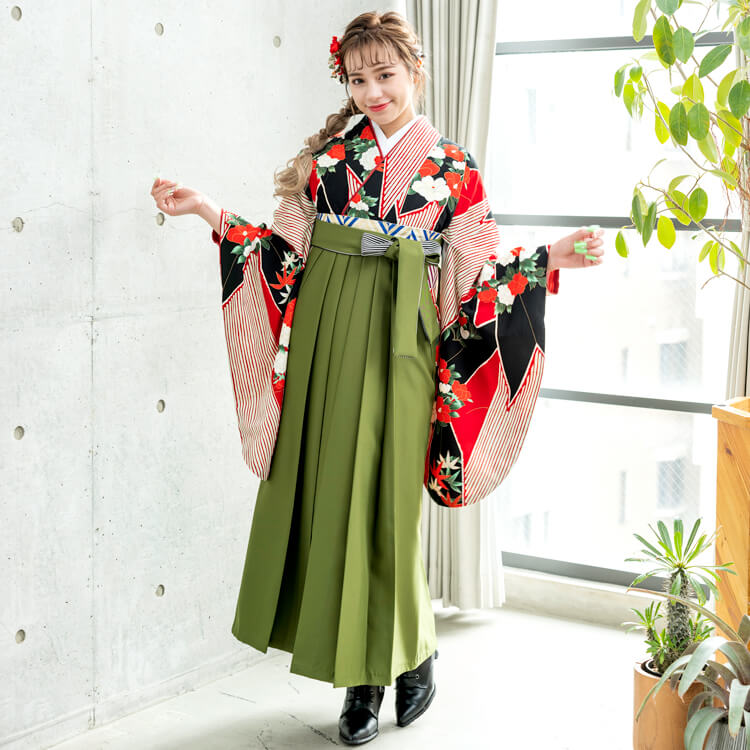 どんなときも少し足を前後にズラしたり、体を斜めに向けてみると、スラリとした袴美人に写ります。