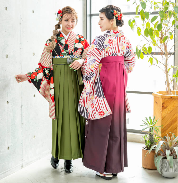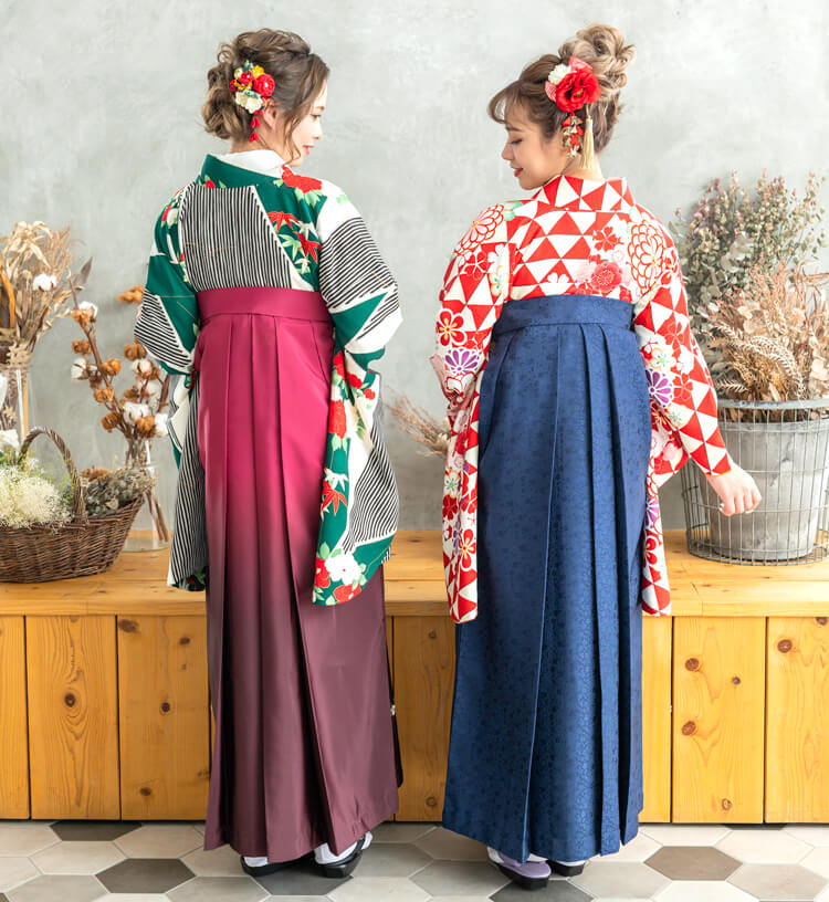 2人がレンタルした袴のデザインが良く映えるポーズです。