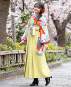 | 卒業式の袴レンタルでポップなデザインをお探しなら必見! 愛らしい印象に仕上げた梅の花の着物[CCC598]に、鮮やかなモスグリーンの袴[MGS014]を組み合わせてみました。 大きな梅の花を赤い生地が協調。 鮮やかな緑色の袴は、清潔感のある印象に仕上げます。 お人形さんのようなキュートなイメージにピッタリの卒業式のレンタル袴です。 卒業式の袴をレンタルするなら京都さがの館へ。 |