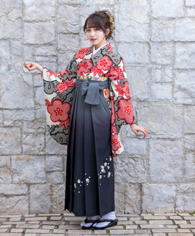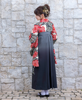 卒業式の袴レンタルするなら、甘すぎないのに可愛い赤と黒の絞り柄はいかがでしょうか。