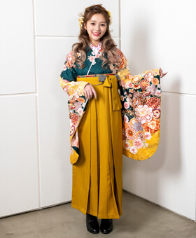 卒業式の袴レンタルで穏やかな印象を与える緑の卒業式袴。