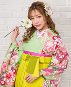 | 卒業式に袴をレンタルするなら、春の明るさをイメージさせる着物[DDD849]と袴[KIB051]のコーディネートはいかがでしょうか。 若葉色のような優しい黄緑地の着物には、淡いピンクを思わせる撫子色で古典柄を描き、春の訪れを優しく感じさせてくれます。 明るい黄色の袴を合わせることで全体の明るさが増し、現代的でポップな雰囲気に。 着物に描かれた古典柄のおかげで、奇抜さはなく可憐に着こなすことができます。 卒業式にレンタルできる古典柄の袴は茶色や紫などディープな色合いが多いので、明るくポップな印象で古典柄を着こなしたいなら絶対おすすめです! 卒業式の袴をレンタルするなら京都さがの館へ。 |