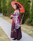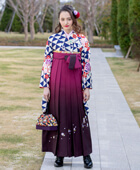 | 青色のウロコ柄の着物[DDD874]。ワインレッドのグラデーションに刺繍入り袴[WBS060]の組み合わせ。 知的で大人の印象を与える卒業式の袴コーディネート。 青色のウロコ柄に色とりどりの花柄を加えた華やかな着物。 ワインレッドのグラデーションでより洗礼された印象に。 卒業式の袴をレンタルするなら京都さがの館へ。 |