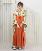 緑色とオレンジ色の袴の組み合わせでキュートに。