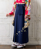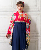 華やかな赤地の着物と清潔感ある紺地の袴はコントラストも綺麗で卒業式の定番配色。