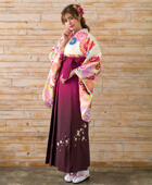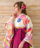 着物:クリーム地パステル矢車[DDD869]と、袴:ワインボカシシシュウ[WBS060]の組み合わせです。
