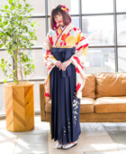| 小学校の卒業式にはポップで可愛い袴をレンタルしたいという方は、着物[CCC571]と袴[KOY205]の組み合わせがおすすめです! 赤やオレンジなどの華やかな色合いの着物を、清潔感のある紺の袴で締めてみました。 赤色で大きく描かれているのは矢羽根。 オレンジや黄色で紅葉が描かれ、淡い水色で梅も描かれています。 これらは全て一つ一つに意味が込められた古典柄。 特に紅葉は、色が変わることから世渡り上手になると言われていて、これから大人になっていく小学生のお嬢様にぴったりですよね。 そんな古典柄である矢羽根や紅葉などもポップに着こなすことができる卒業式のレンタル袴です。 卒業式の小学生用袴をレンタルするなら京都さがの館へ。 |