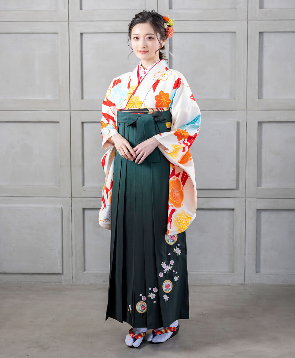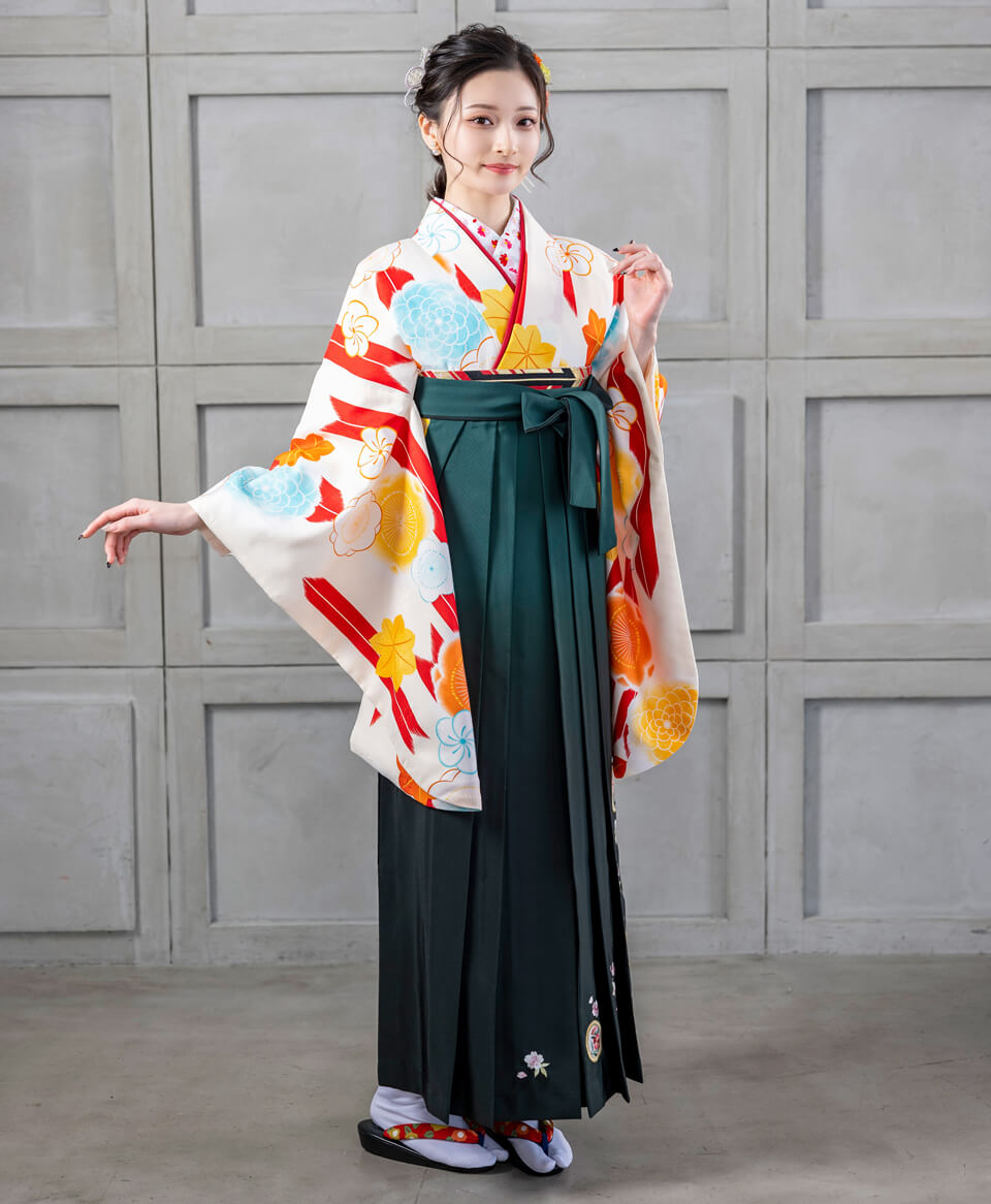 豪華なグラデーション袴『グリーンボカシ撫子に橘』を合わせ忘れられない装いに。