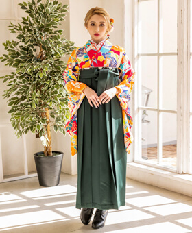 モダンな絵柄に見えますが、椿や橘、扇など卒業式にピッタリな伝統的な古典柄が描かれています。