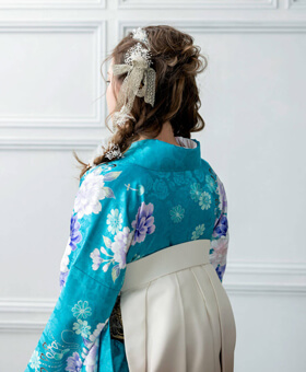 可憐で美しい印象になる水色を卒業式の袴レンタルでお探しなら。