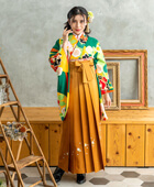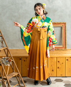 キンチャ色の袴を合わせることで緑色と対比し華やかな印象を与えます。