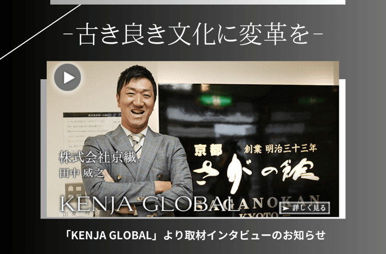 名だたる経営者の方に取材インタビューをされてきた番組「KENJA GLOBAL」。弊社代表取締役社長の田中威之が取材インタビューを受けました。 京都を代表する着物文化継承のため挑戦し続けてきたその信念をお話しています。